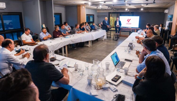 En el marco de su visita al país, Javier Tebas (presidente de La Liga española de fútbol) se reunió con los dirigentes del básquet profesional argentino y expuso un completo panorama del deporte a nivel mundial, los principales desafíos de La Liga y el futuro del entretenimiento deportivo.